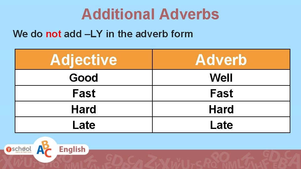 The position of the adverb does not change in a negative sentence: Adverbs of manner are typically located: Like other adverbs of manner (slowly, thoughtfully, excitedly, etc.), quickly is most often placed before the main verb, especially if the verb has a direct . Quickly · quickly is the usual adverb from quick: Adverbs are used to modify a verb, an adjective, or another adverb: A few adverbs of manner have the same form as the adjective: Finally, in 3, the adverb incredibly tells us how fast the car goes. · quick is sometimes used as an adverb in very informal . Many english learners use the word "fastly" as an adverbial form of "fast", which seems quite logical because this is the way adverbs are usually formed. Where should we put an adverb of manner in the sentence? Immediately before the main verb. Adverbs of manner list · fast fatally fiercely fondly foolishly fortunately frankly frantically generously gently · hard hastily healthily honestly hungrily A módhatározókat adverbs of manner arra használjuk, hogy információt.